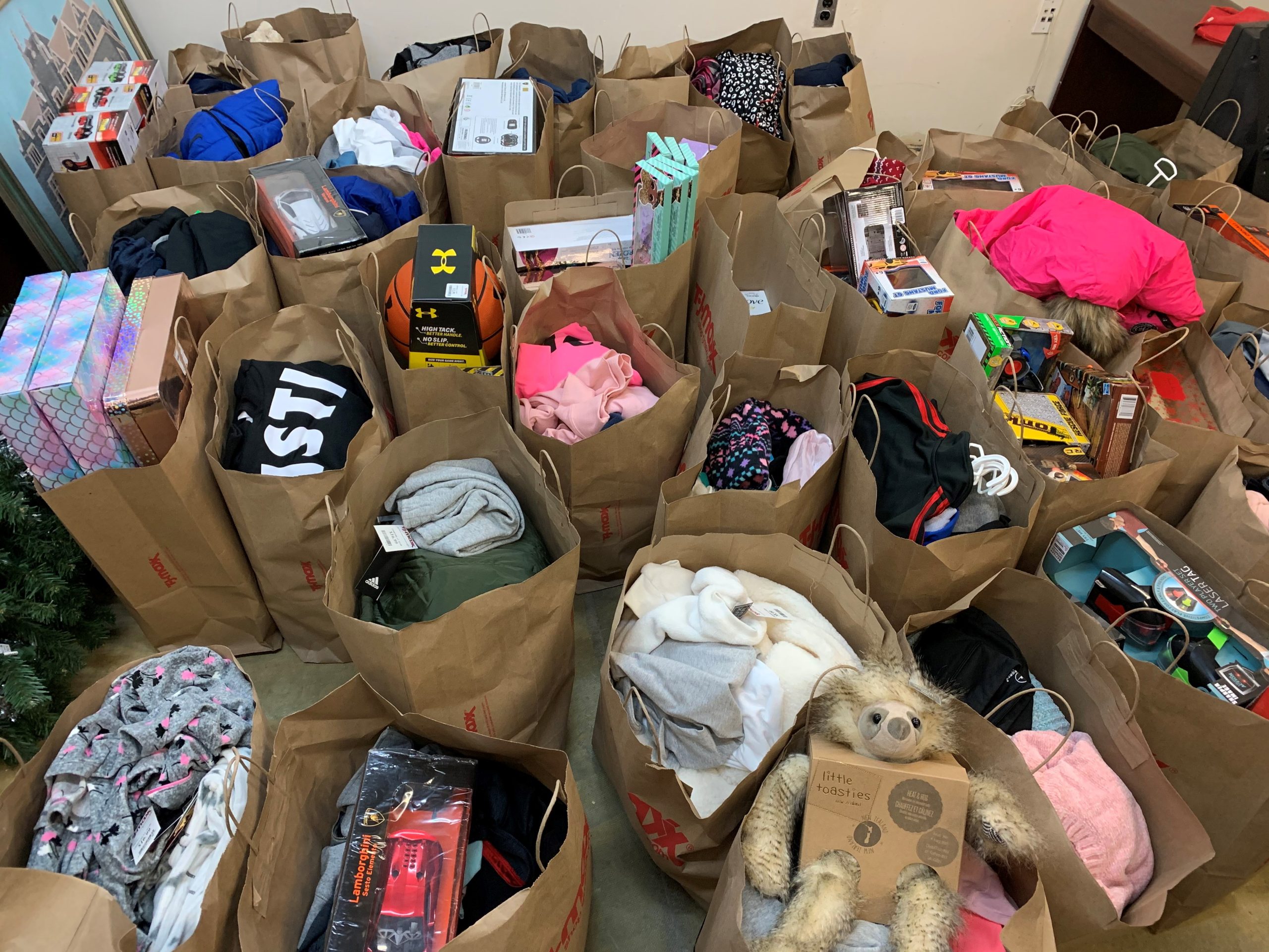 several SUVs (this year it was seven) full of toys, clothes, backpacks, and