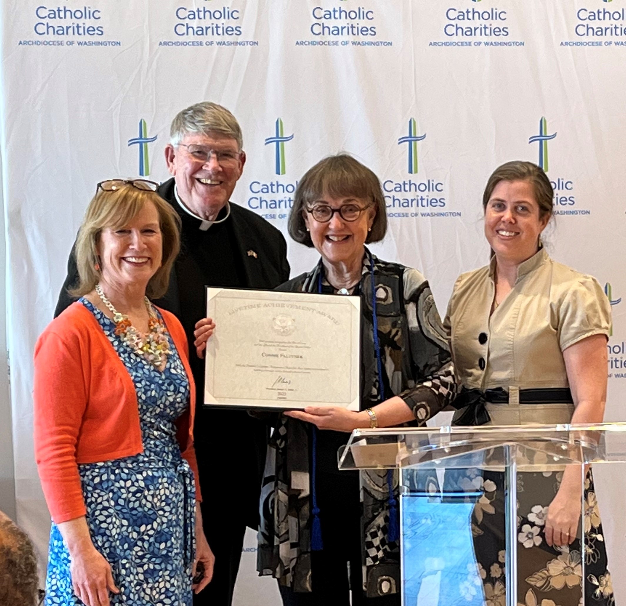Elizabeth Meers, volunteered for decades in a variety of important roles so was nominated by the agency for the Catholic Charities USA Volunteer of the Year Award. Meers serves the Catholic Charities Legal Network as a volunteer on the program’s intake line, helping prescreen low-income callers requesting legal assistance, as a leader by serving as the former chair and member of the Legal Network’s Advisory Council, and as a volunteer recruiter. Her efforts strengthened the organization and advanced the work of the Legal Network. Meers also serves on the Catholic Charities Board of Directors.
