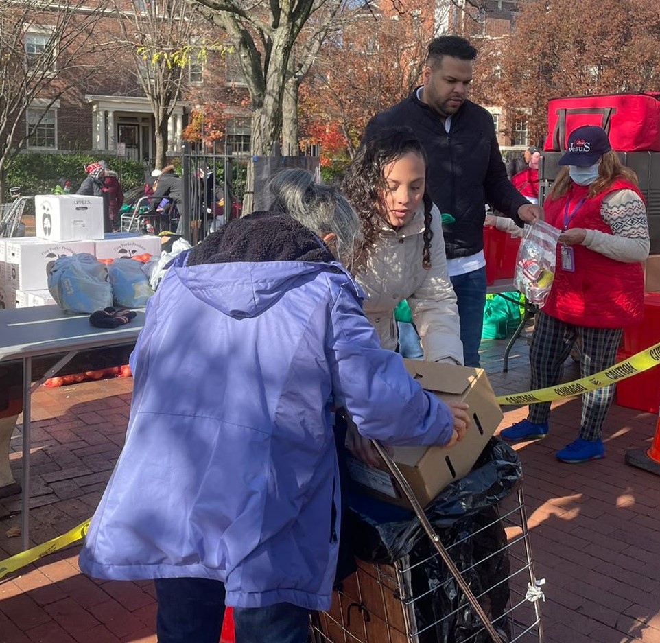 A special Thanksgiving meal occurred on Nov. 22, as well. Catholic Charities and Pepco partnered to serve several hundred people experiencing homelessness or hunger in the area. Each person received two grab-and-go meals of turkey, mashed potatoes with gravy, collard greens, corn bread and a brownie prepared by the Catholic Charities’ KitchenWork program and served by staff and volunteers. After picking up their meals, the guests also received winter coats and toiletry kits from Pepco staff and volunteers.