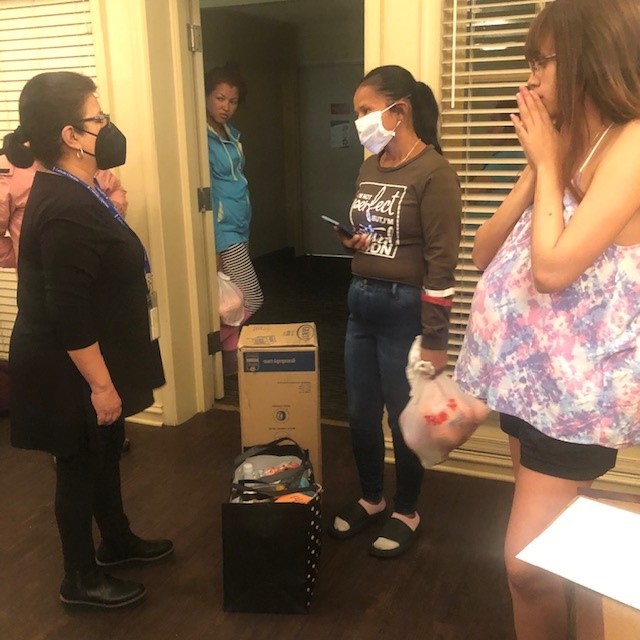 Holy Trinity has a migrant support team that aids 20 families from different countries across the world seeking asylum. The parish provides legal assistance, housing, food, education and more to the families until they establish legal status in the United States. Ashley brought food from the Spanish Catholic Center’s distribution back to Holy Trinity, where it was organized into individual packages for volunteers to deliver to migrant families.